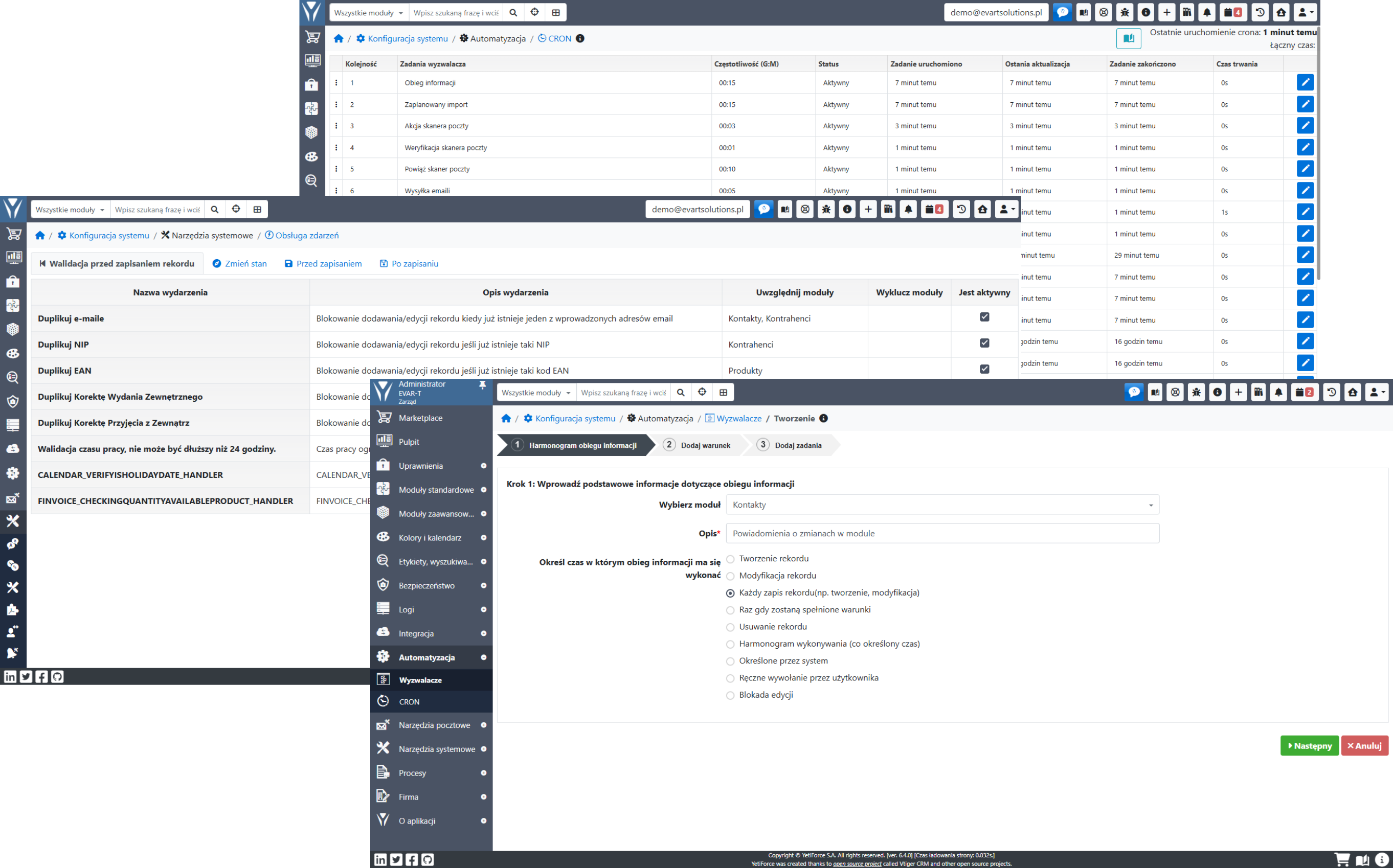 Są to zadania automatyzujące pewne procesy w systemie bez konieczności ingerencji użytkownika. Wystarczy że dane, które wprowadzisz do danego modułu spełnią określone warunki a system automatycznie wykona zadania.